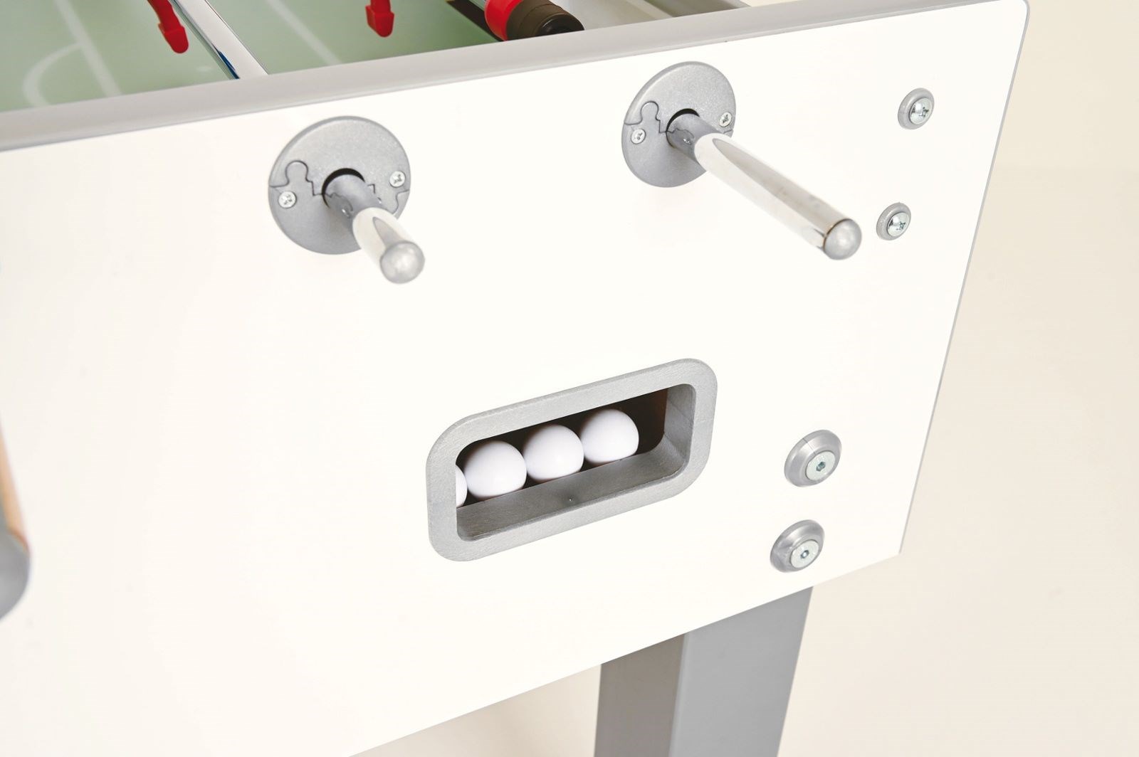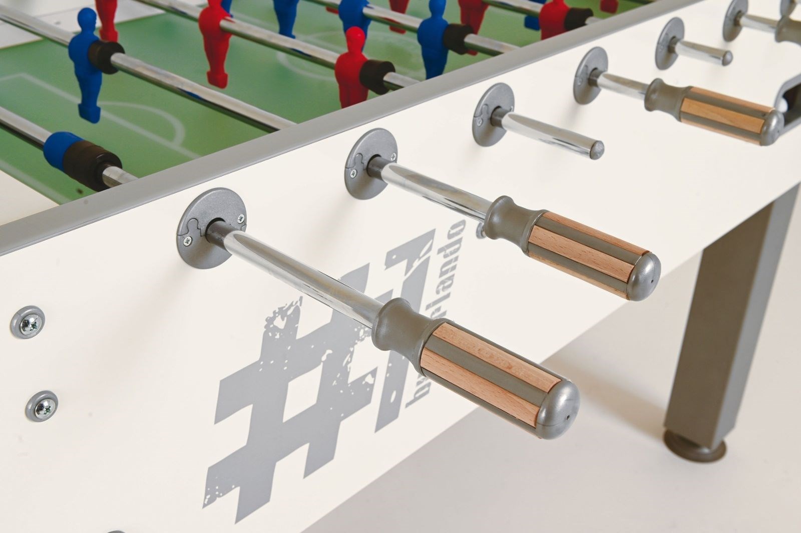 Spilleflade af sandblæst glas i absolut topklasse. Denne overflade gør det nemt at kontrollere bolde og lave seje tricks. #1 fra Garlando har indvendig måltrakt til opsamling af bolde og tilbageløb. Bordet er udstyret med 10x10 cm stålben med højde justérbare fødder, der giver et perfekt jævnt bord også til turneringsbrug.
