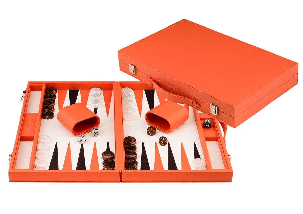 Lækkert og flot udseende backgammon spil i frisk orange farve.