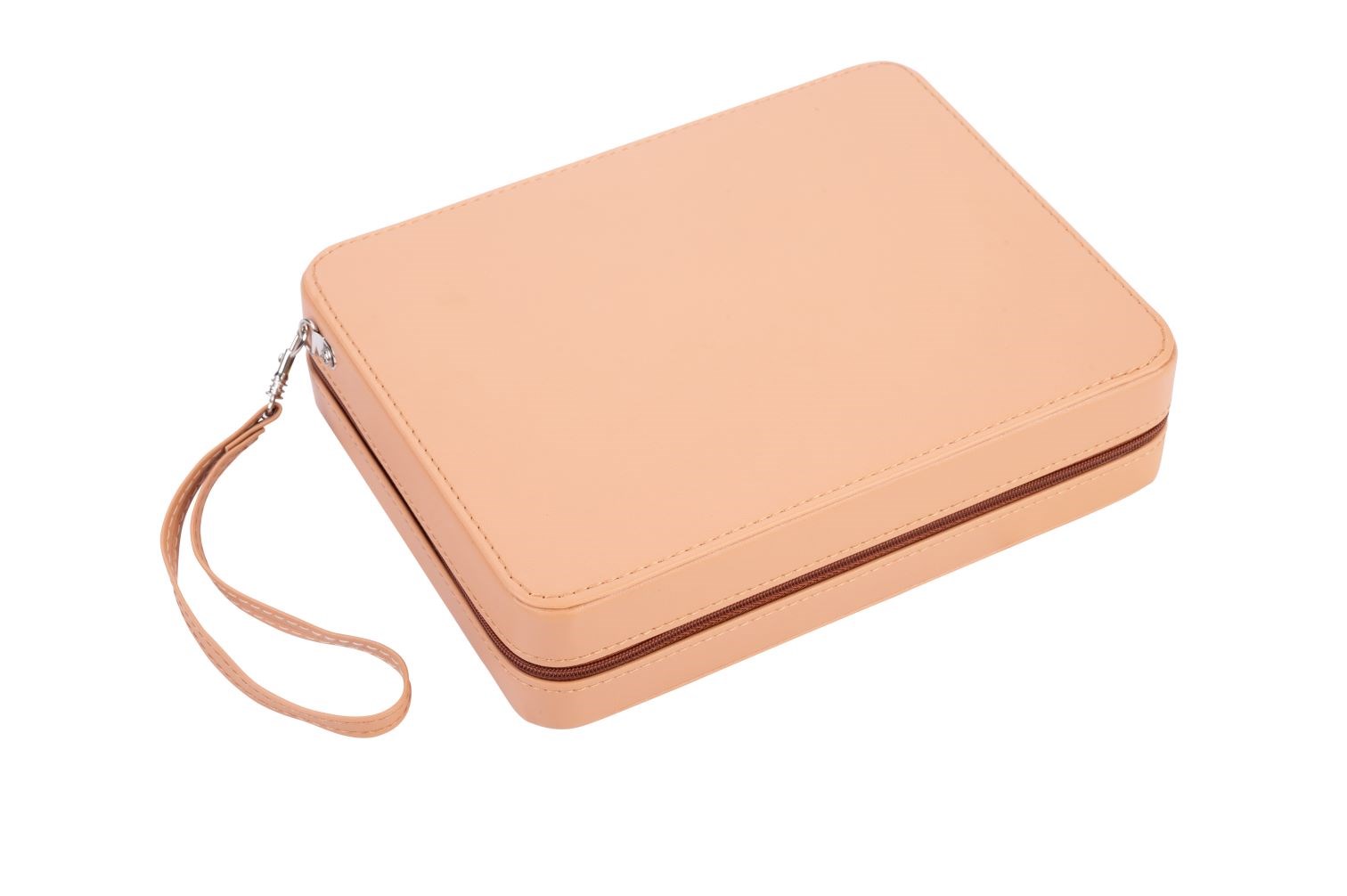 Spillet er i en flot rød kunstlæder kuffert i størrelsen 23 x 18 cm - lukkes med lynlås.
