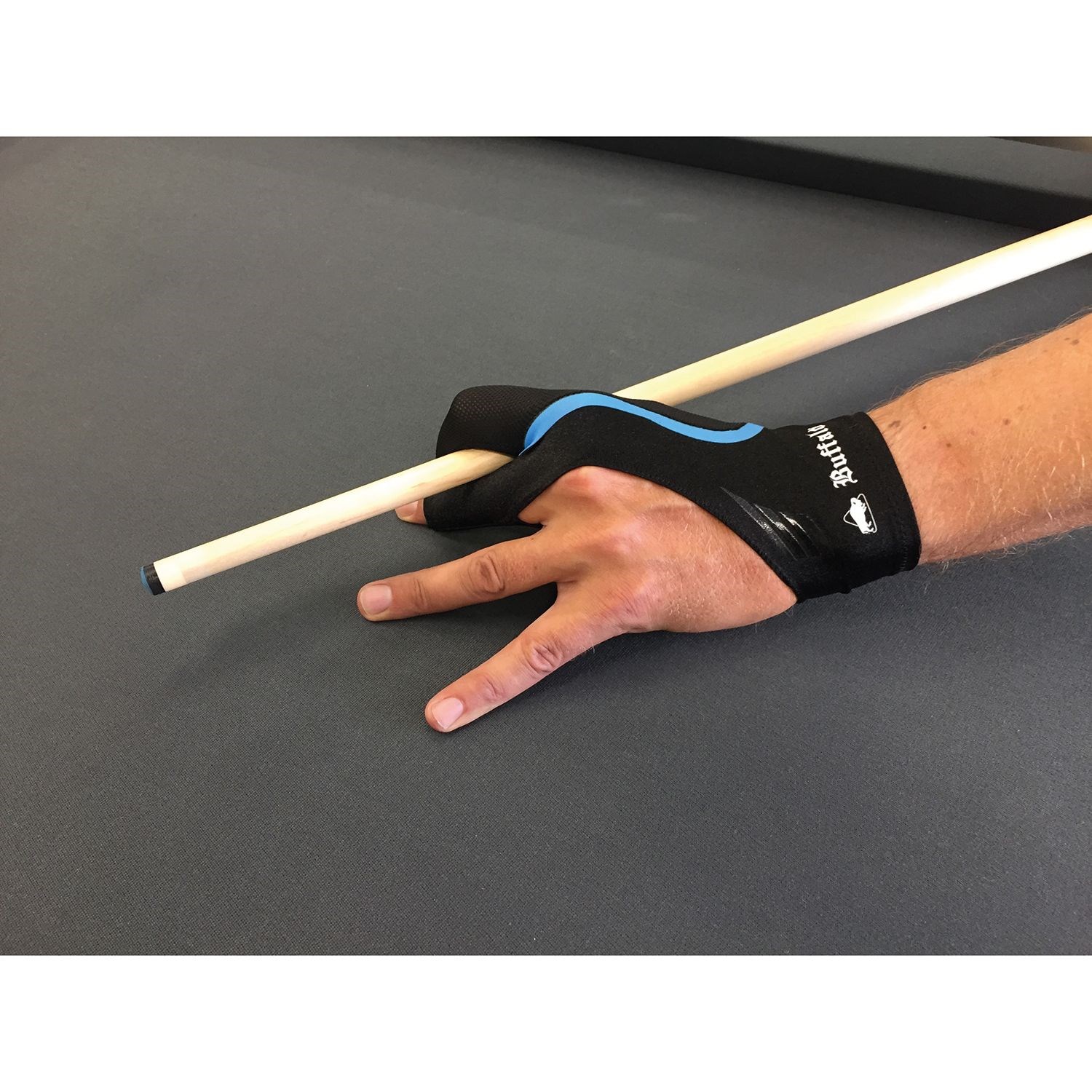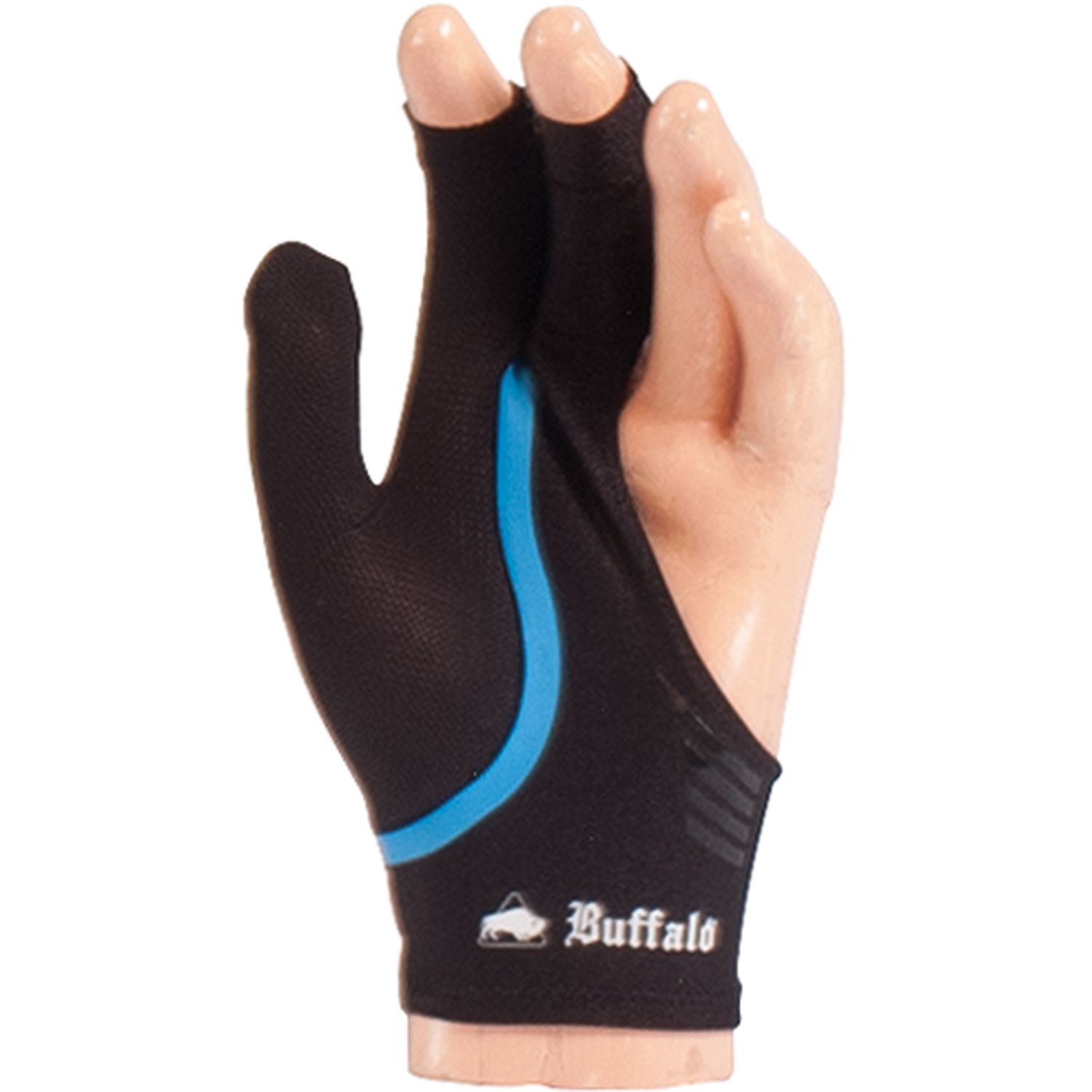 Buffalo Reversible handske i sort og blå farve er én af de eneste billardhandsker på markedet, som kan bruges på både højre og venstre hånd.