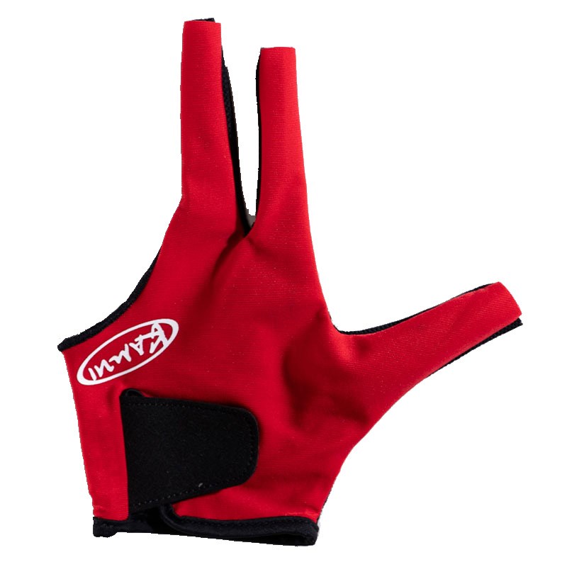 Lækker billardhandske fra Kamui i rød/sort design til brug på VENSTRE hånd.