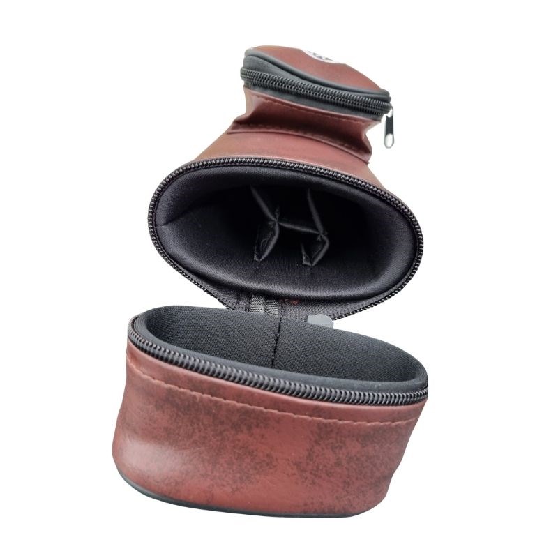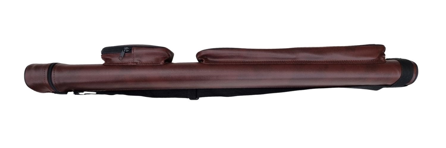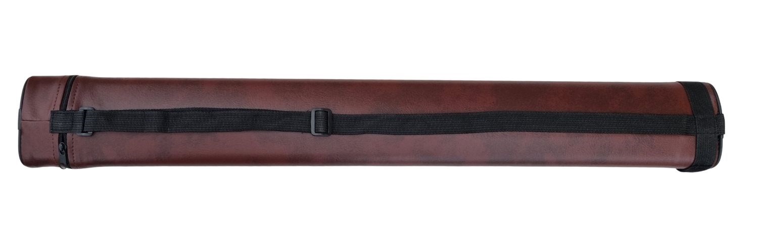Køetui udformet som et tube i ovalt design i burgundy slidstærkt kunstlæder. Plads til 2 bundstykker og 2 spidser. Etuiet har åbning i toppen med lynlås og praktisk justérbar skulderrem samt 2 praktiske rum til tilbehør.Varenr.: 3132052