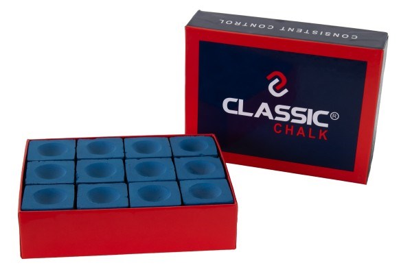 Blå Classic Chalk billardkridt. Kommer i en æske med 12 stk. kridt i.Varenr.: 3010010