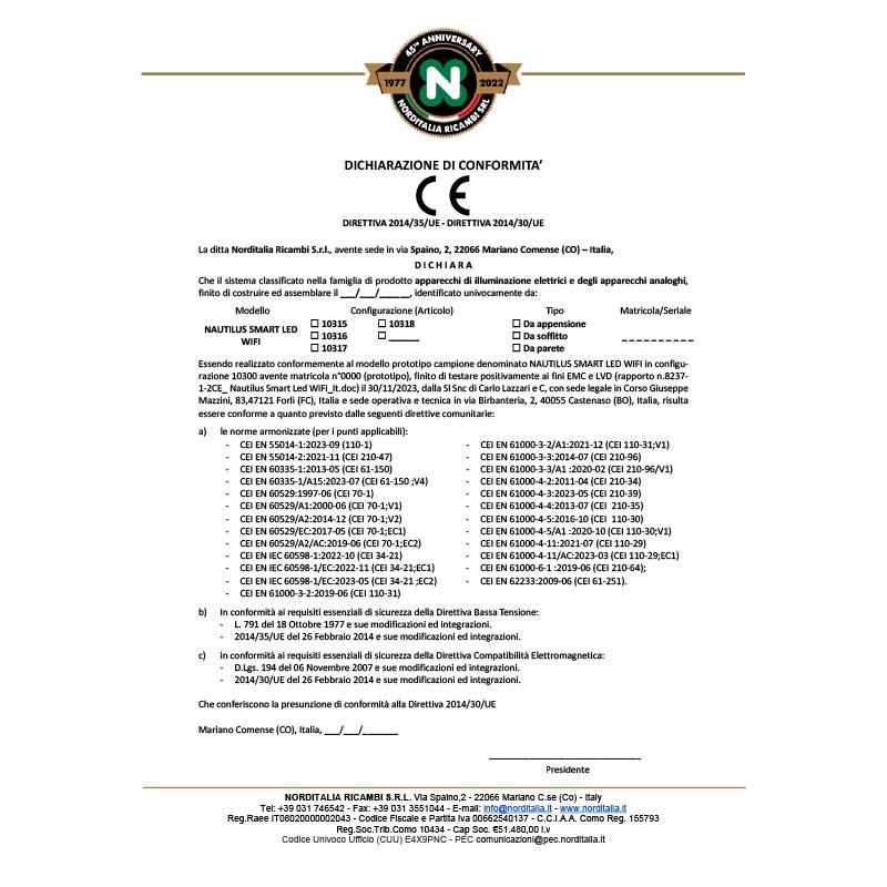 Lampen er CE-, UKCA- og RoHS-certificeret.