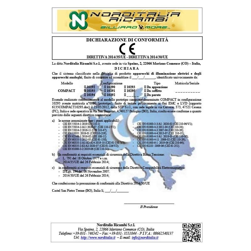N-LED billard-lampen udviklet af Longoni til billardborde på tværs af forskellige discipliner.