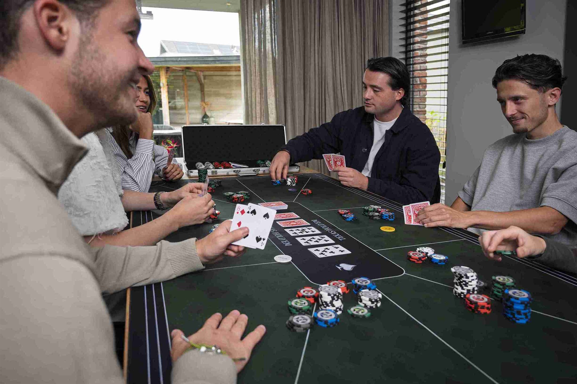 Super lækker deluxe pokerkuffert i aluminium med 500 nummererede chips, dealer- og blinds-button, 5 terninger og to sæt kort - alt til drengeaftenen. Kufferten er foret med skumgummi. Dette pokersæt er fuldt komplet til at spille Texas Hold'em!