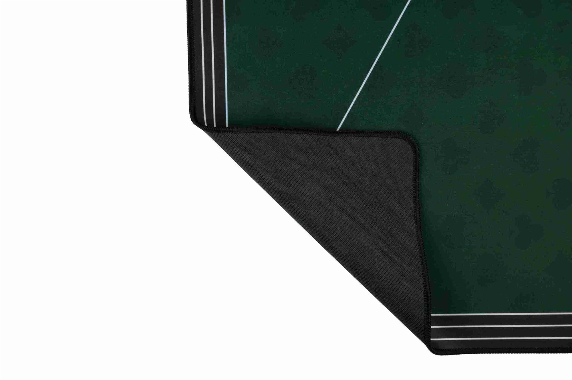 Pokermåtte / pokerklæde af polyester og gummi. Overfladen er glat og klar til at spille mange timers poker på. Undersiden er af skridsikkert gummibelægning, så klædet bliver på sin plads. Opgrader dit pokerspil og få casino-oplevelsen hjem i stuen eller aktivitetsrummet.