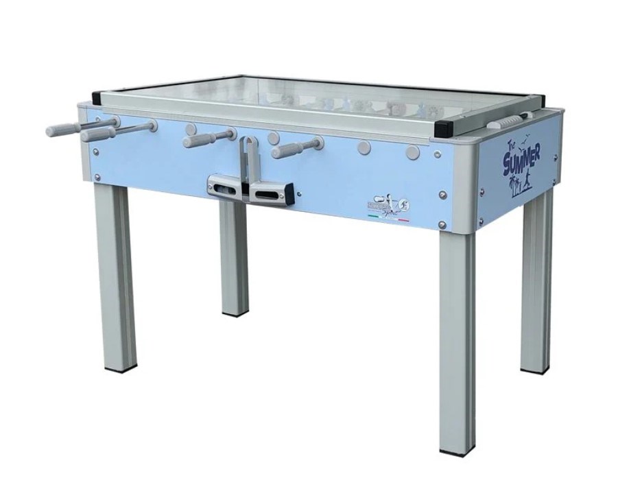 Summer Free COVER udendørs fodboldbord er sidste nye skud på stammen fra Italienske Roberto. Et super holdbart udendørs bord med med ben udført i anodiseret aluminium og teleskopstænger i rustfrit stål med gummi håndtag.