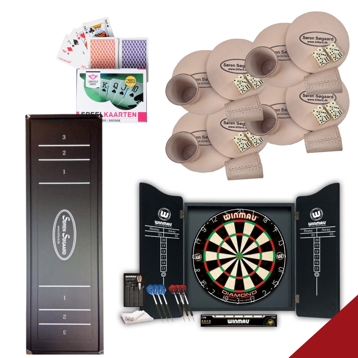 Sjov aften DELUXE pakke - shuffleball, kort, dart og terninger