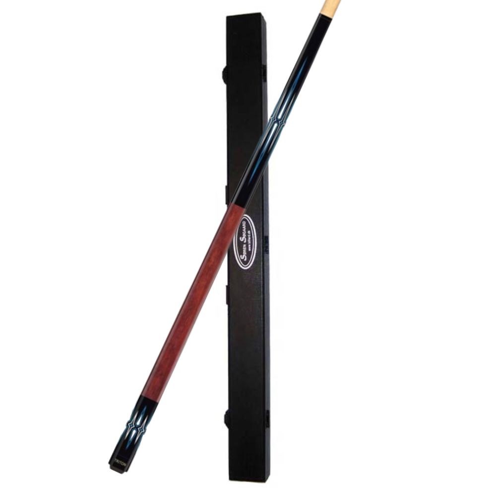 En fornuftig mellemklasse kø, som kan bruges til både kegle og carambolebillard - dertil får du en god solid køkasse, der vil passe godt på din nye kø.