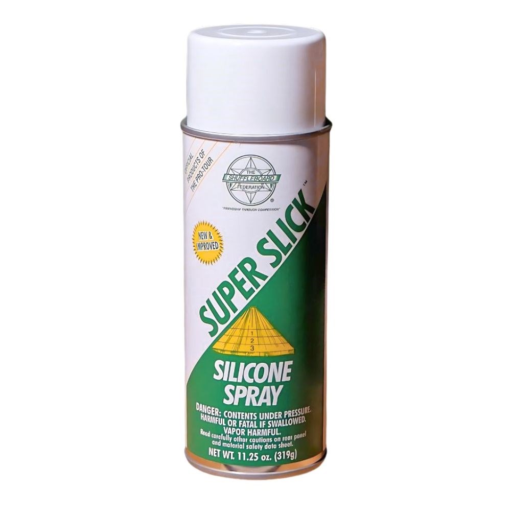 TSF Super Slick silikonespray til shuffleboards, giver en langvarig og konstant hastighed, yderligere hjælper det også med at beskytte finishen på shuffleboardet.